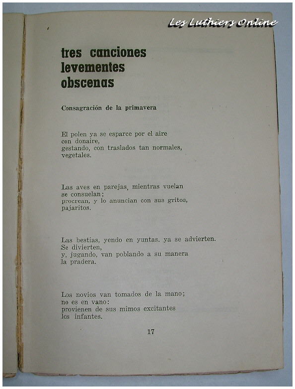 MM: Al ciclo de las tres canciones levemente obscenas de Johann Sebastian Mastropiero pertenece "El polen ya se esparce por el aire" para: latín, máquina de tocar, tubófono parafínico cromático, bass-pipe a vara y cupletero solista.