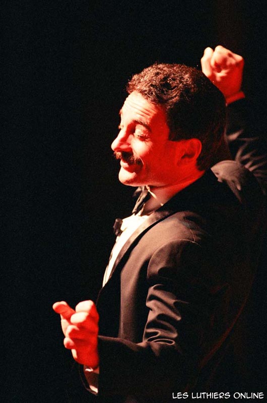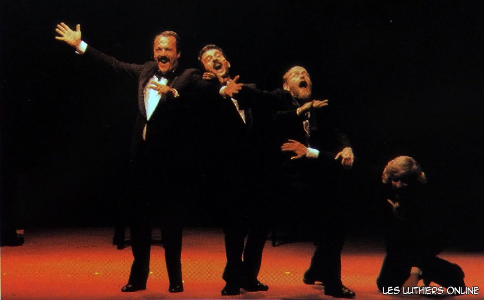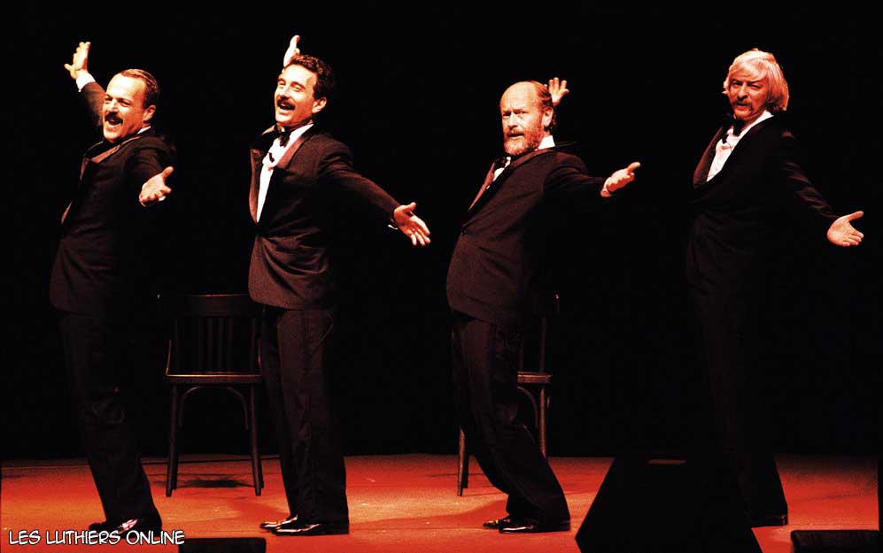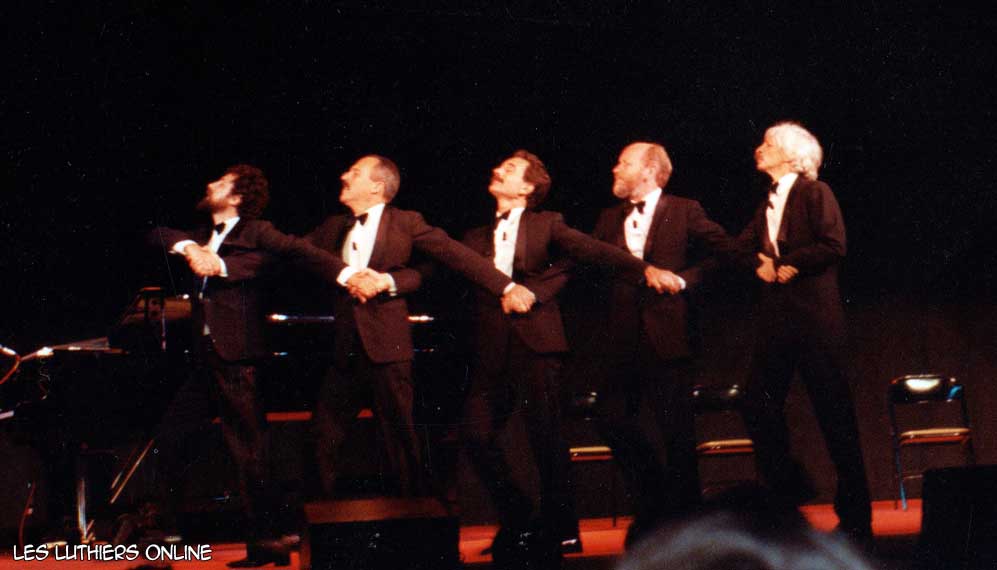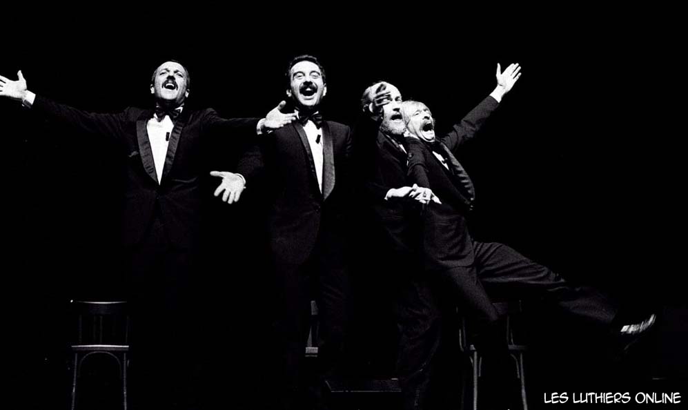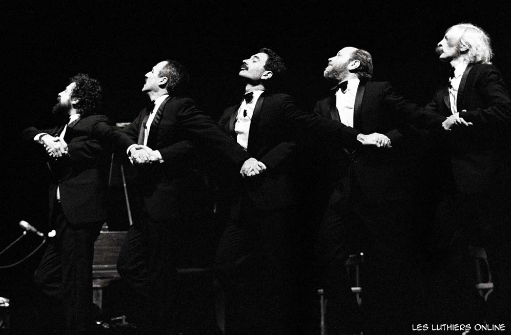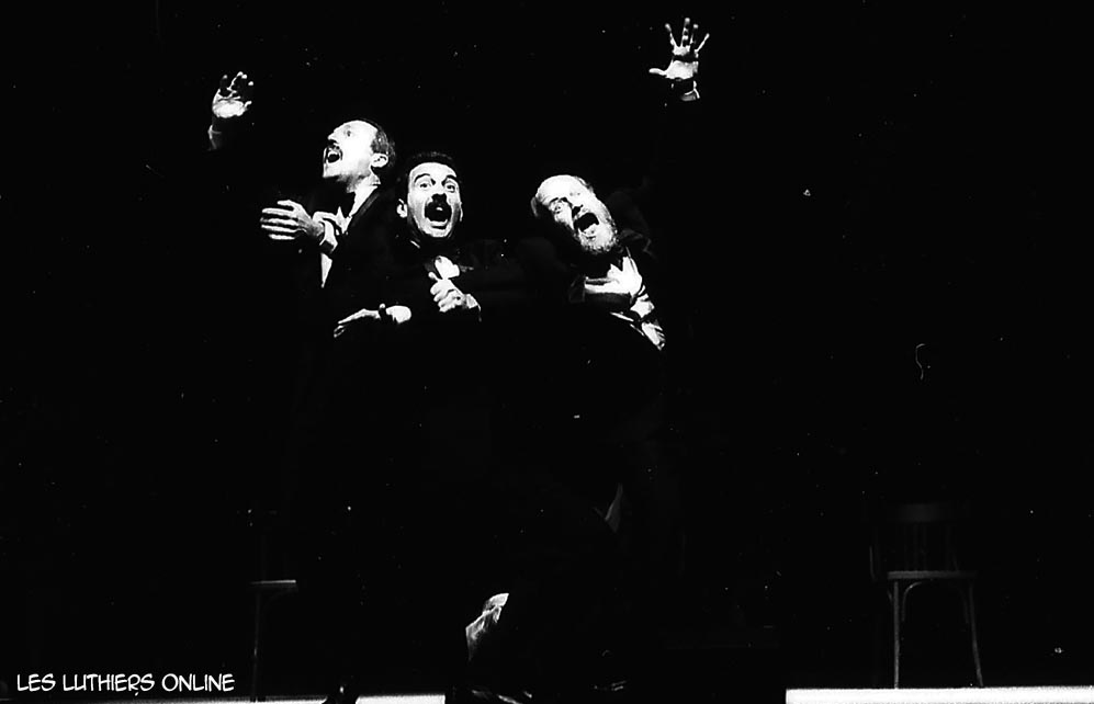 DR: A continuación, y finalizando el presente recital de Les Luthiers, vamos a ensayar algunos números de la comedia musical que montaremos próximamente. Me quiero presentar a ustedes, ni nombre es Frank, me llamo Frank, mis amigos me dicen Pancho, pero me llamo Frank. Soy coreógrafo, soy coreógrafo de profesión, voy a dirigir esta comedia musical. Tengo 26 años...de teatro, yo tengo 28. Las cosas que se dicen de nosotros, los coreógrafos, no falta el que dice que somos bailarines frustrados; yo no soy ningún bailarín frustrado, soy un coreógrafo... frustrado. Ahora vamos a hacer una selección de actores y bailarines, tenemos unos aspirantes haciendo precalentamiento. Vamos a verlos.