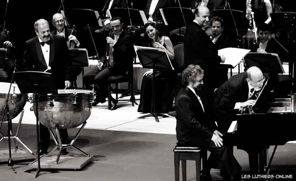 El concierto para piano y orquesta de... de dicho compositor, se inicia con un redoble de timbales que simboliza la irreversibilidad de los destinos humanos: Inmediatamente, una enérgica llamada de los bronces, sugiere que en realidad nada es irreversible, y mucho menos los destinos humanos. Esta aparente contradicción conduce a la entrada del solista quien ejecuta una serie de arpegios descendentes en los que el compositor se propone representar la desprotección del hombre... y no lo logra. Mientras, los violines dibujan un elaborado contracanto, el piano ataca el tema principal que resulta ileso. Al tema principal lo sigue un adagio tranquillo, ... y por supuesto no lo alcanza. Más tarde, aparece el fragmento de mayor dificultad para el solista, que debe ejecutarlo cruzando ambas manos sobre el teclado, con la siguiente indicación del autor: "Allegro pericoloso, conserve su mano al cruzar".